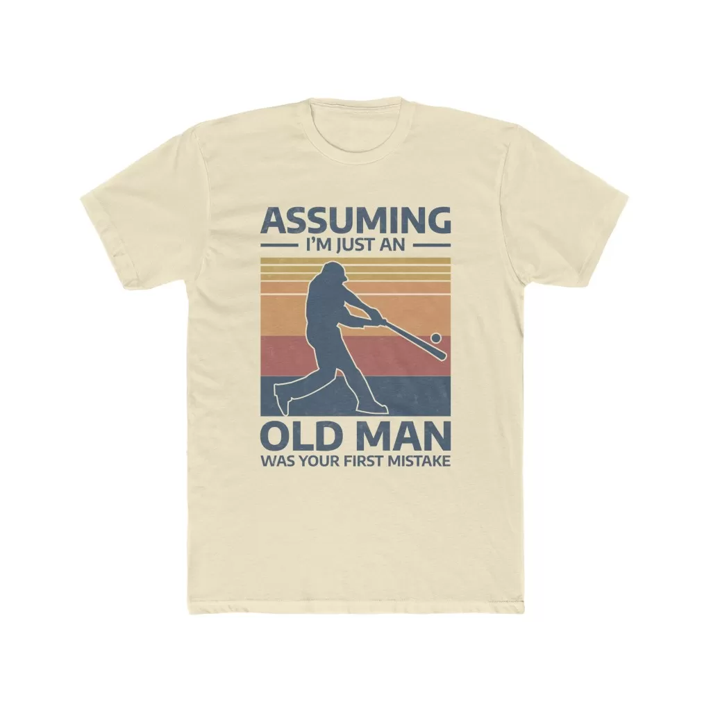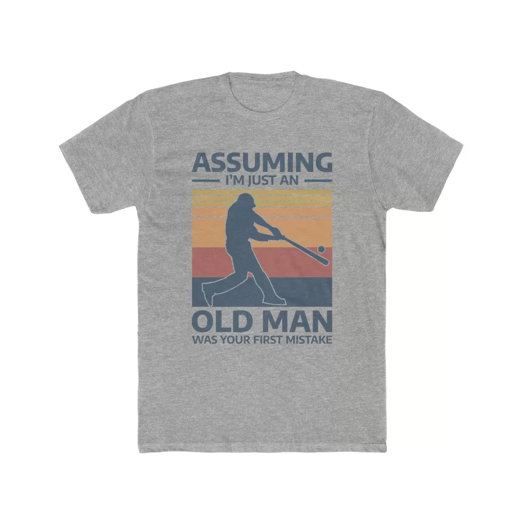 Assuming i’m just an old man was your first mistake Comfortable and light, this premium fitted short sleeve is a classic choice. High quality print adds a statement to one’s workout or everyday routine.