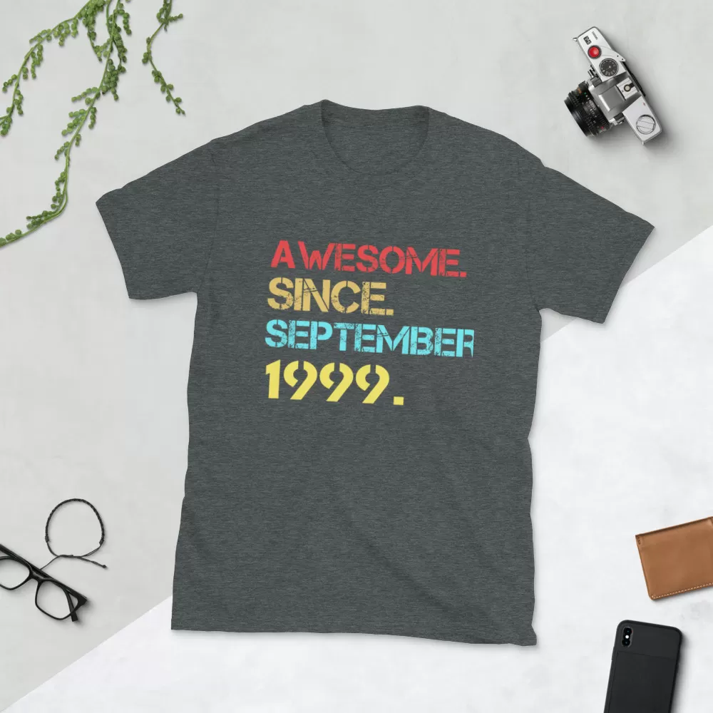 Awesome Since September You’ve now found the staple t-shirt of your wardrobe. It’s made of a thicker, heavier cotton, but it’s still soft and comfy.