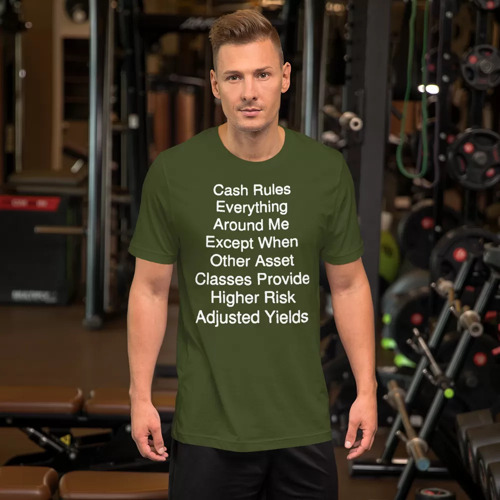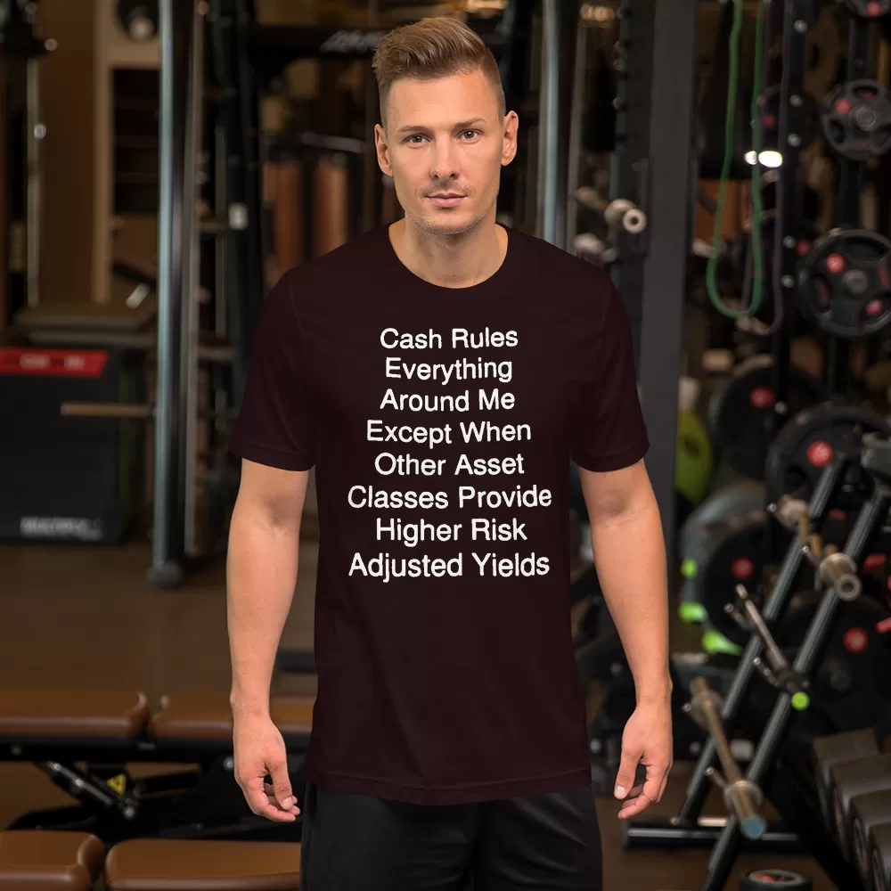 cash rules everything around me except when other asset classes shirt This t-shirt is everything you’ve dreamed of and more. It feels soft and lightweight, with the right amount of stretch. It’s comfortable and flattering for both men and women.