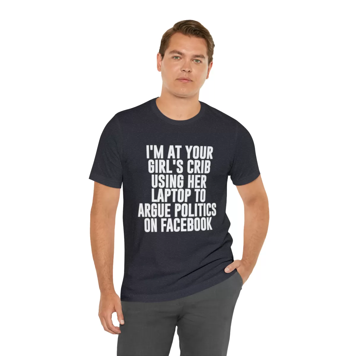 I’m at your girls crib Unisex t-shirt This classic unisex jersey short sleeve tee fits like a well-loved favorite. Soft cotton and quality print make users fall in love with it over and over again. These t-shirts have-ribbed knit collars to bolster shaping. The shoulders have taping for better fit over time. Dual side seams hold the garment’s shape for longer.