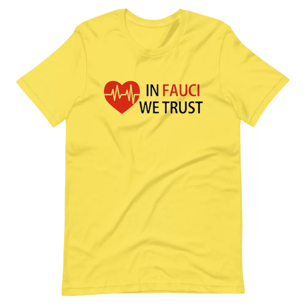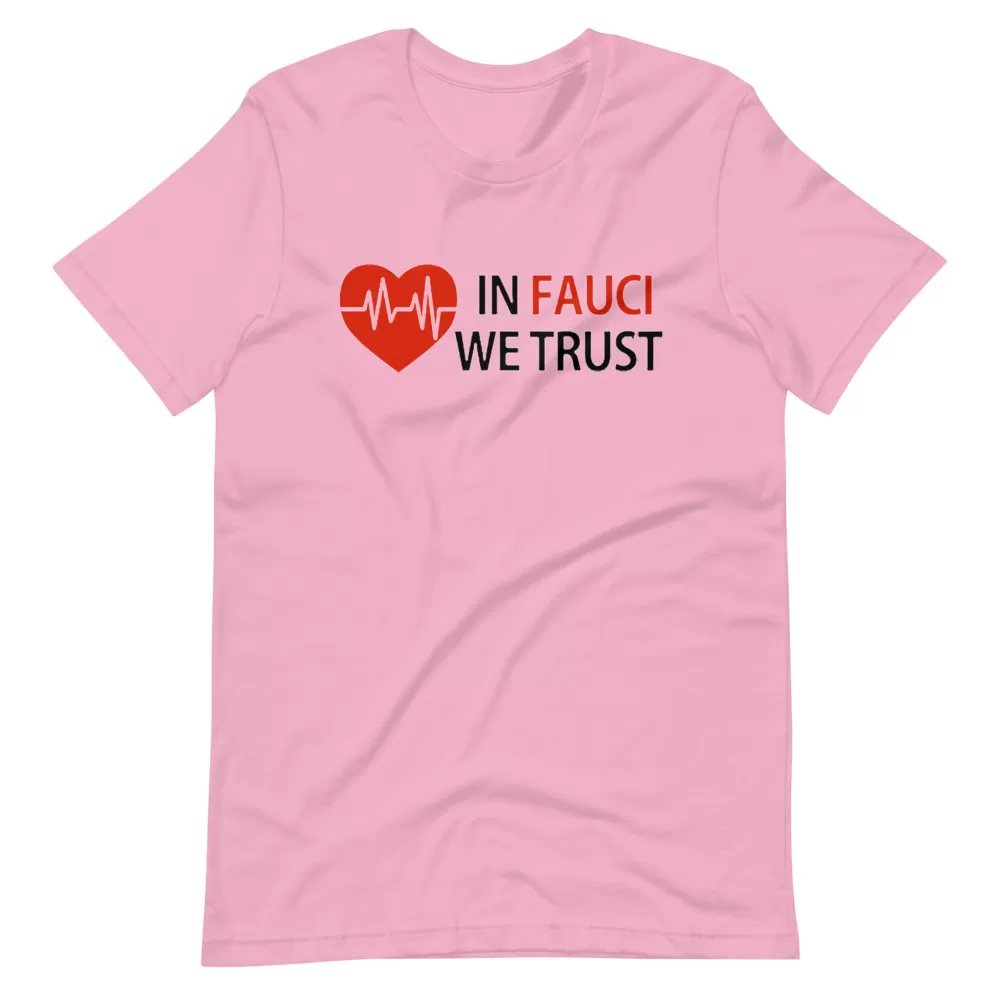 In fauci we trust Unisex T-Shirt This t-shirt is everything you’ve dreamed of and more. It feels soft and lightweight, with the right amount of stretch. It’s comfortable and flattering for both men and women.