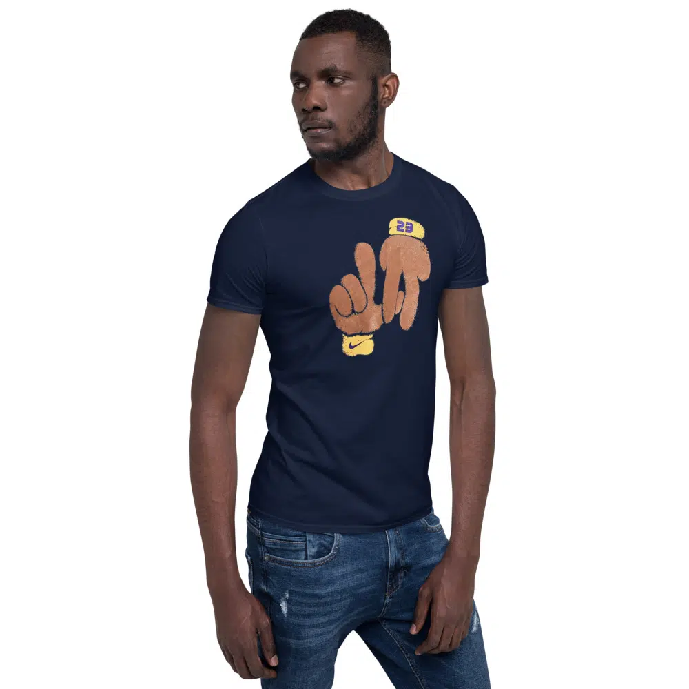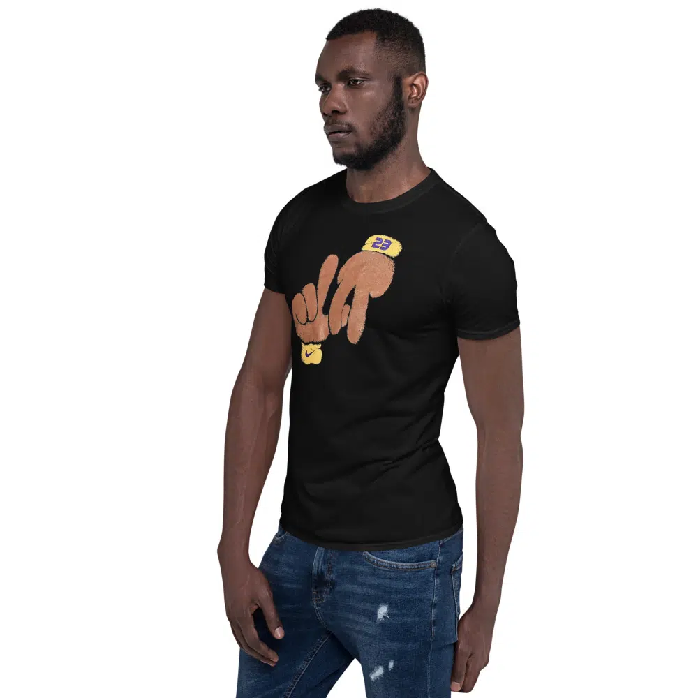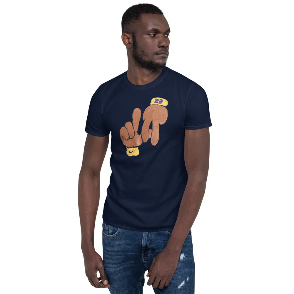 Los Angeles Lakers 23 Unisex T Shirt You’ve now found the staple t-shirt of your wardrobe. It’s made of a thicker, heavier cotton, but it’s still soft and comfy. And the double stitching on the neckline and sleeves add more durability to what is sure to be a favorite!