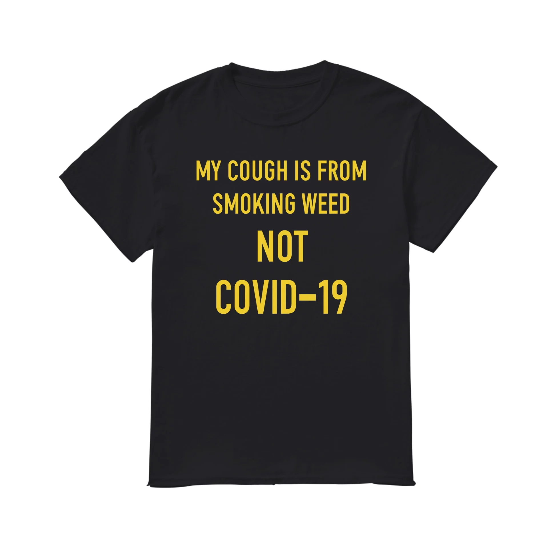 MY COUGH IS FROM SMOKING WEED NOT COVID-19 SHIRT You’ve now found the staple t-shirt of your wardrobe. It’s made of a thicker, heavier cotton, but it’s still soft and comfy. And the double stitching on the neckline and sleeves add more durability to what is sure to be a favorite!