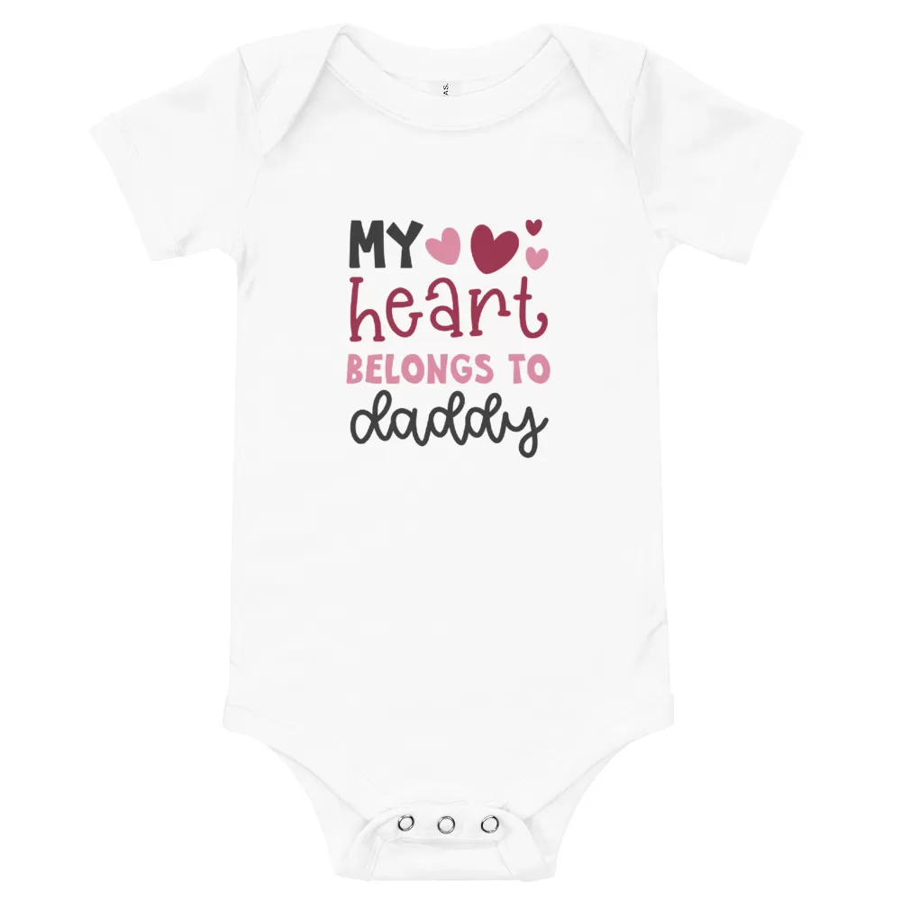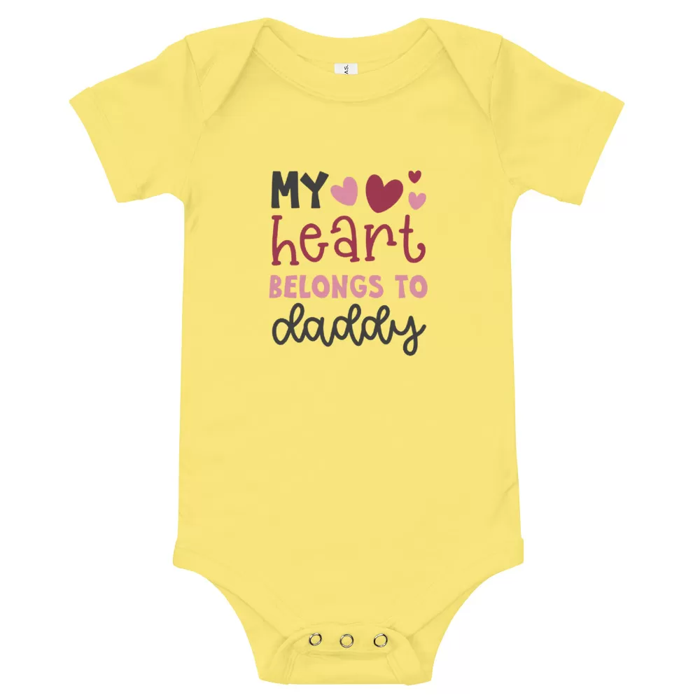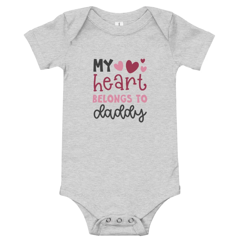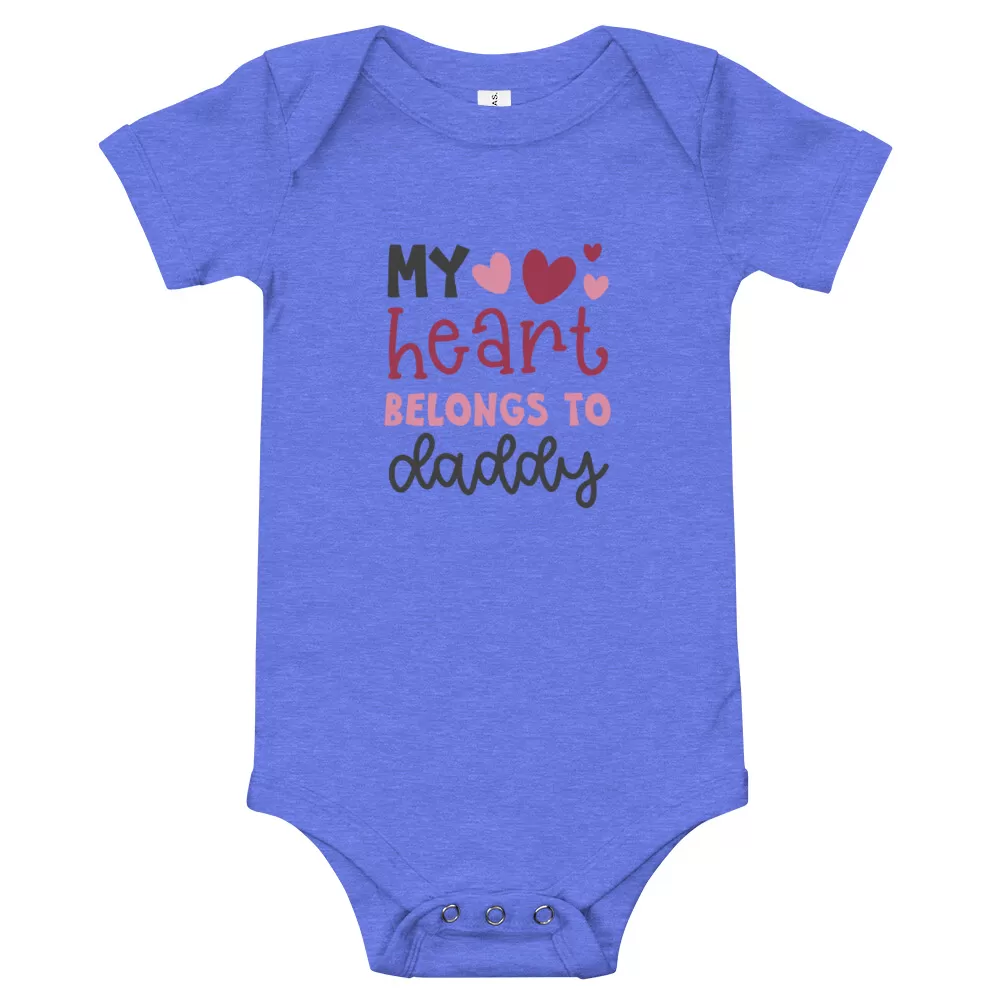 My heart belongs to daddy T-Shirt Dress your baby to the nines with this 100% cotton one piece. It has three snap leg closure for easy changing, a comfortable envelope neckline, and a beautiful print that’s bound to get the baby all happy and giggling.