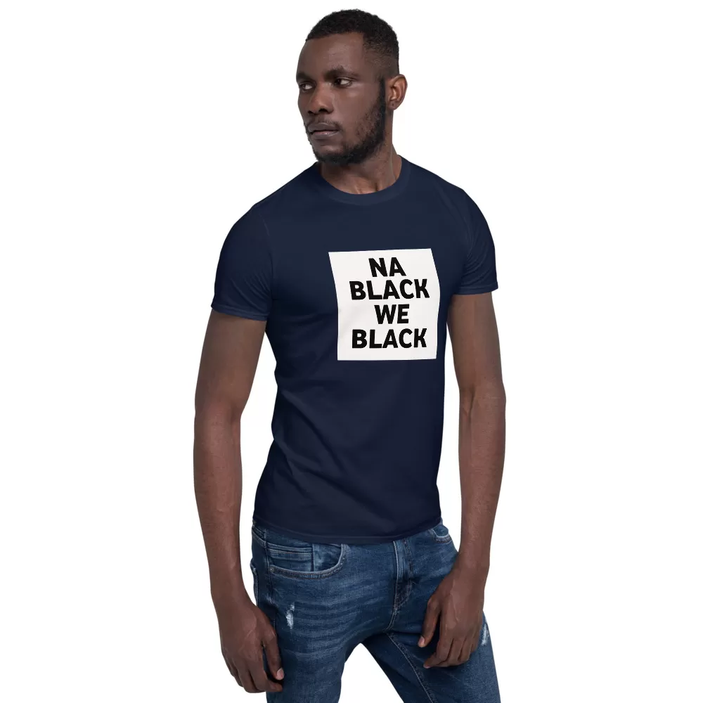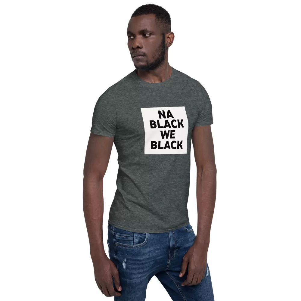 Na Black We Black Unisex T-Shirt You’ve now found the staple t-shirt of your wardrobe. It’s made of a thicker, heavier cotton, but it’s still soft and comfy. And the double stitching on the neckline and sleeves add more durability to what is sure to be a favorite!