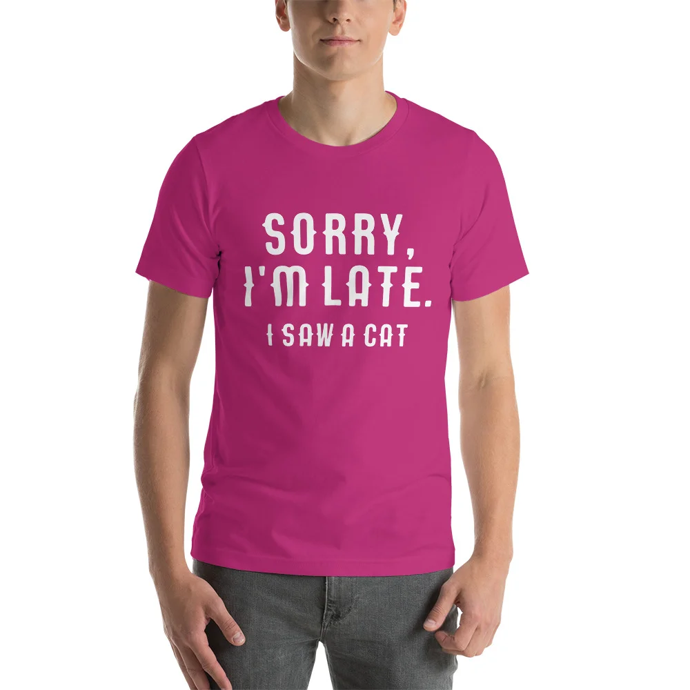 Sorry I’m late I saw a cat t shirt design This t-shirt design for women and men black tshirt is everything you’ve dreamed of and more. It feels soft and lightweight, with the right amount of stretch. It’s comfortable and flattering for all.