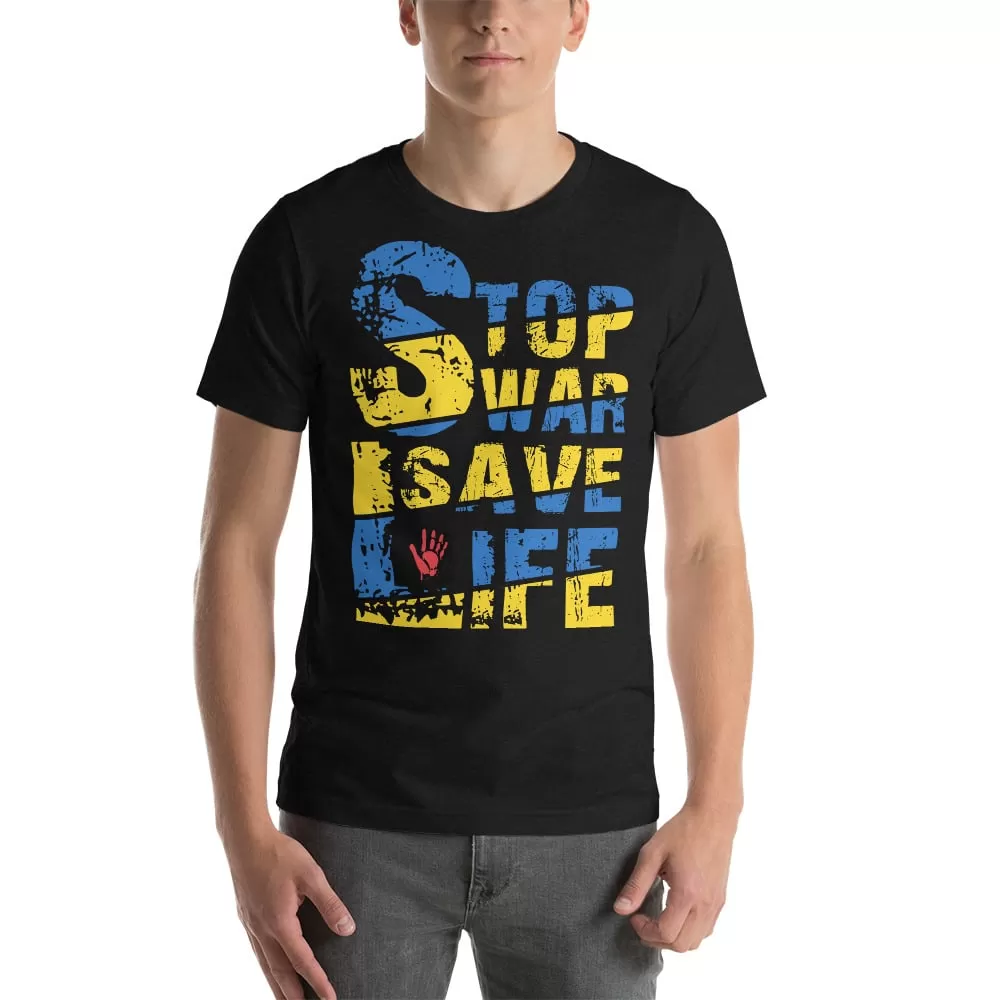 Stop war save life Unisex T-Shirt This t-shirt is everything you’ve dreamed of and more. It feels soft and lightweight, with the right amount of stretch. It’s comfortable and flattering for all.