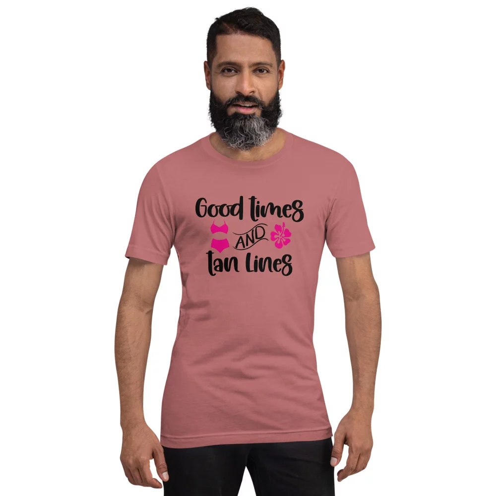 SUMMER GOOD TIME AND TAN LINES Unisex T-Shirt This t-shirt is everything you’ve dreamed of and more. It feels soft and lightweight, with the right amount of stretch. It’s comfortable and flattering for both men and women.